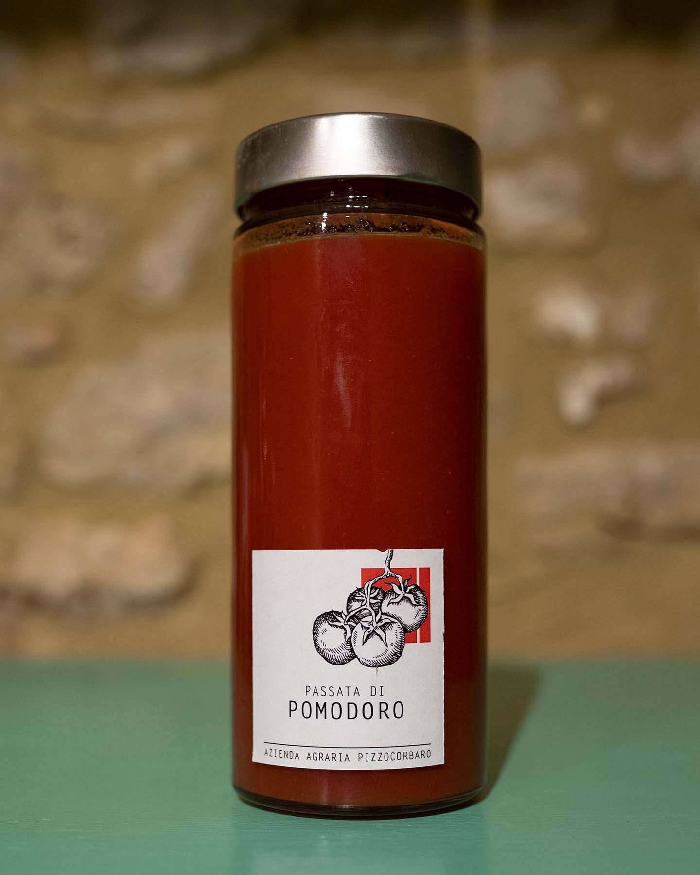 Poniamo estrema cura nella produzione di passate di pomodoro artigianali, utilizzando varietà abruzzesi e controllando tutte le fasi di coltivazione, maturazione e raccolta. La produzione è effettuata entro 24 ore dalla raccolta con i pomodori scottati in acqua prima di essere passati e sottoposti alla classica pastorizzazione a bagnomaria. Le nostre passate sono ottenute dalla varietà di pomodoro ‘Pera di Francavilla’, ‘Romanello’ e ‘San Marzano’, raccolti al giusto grado di maturazione senza aggiunta di altri ingredienti. La cottura concentra il gusto, lasciando al palato una sensazione di leggerezza e pulizia. Il risultato è una salsa dolce, sontuosa e compatta. L’acidità è giusta, la consistenza è fluida e precisa.